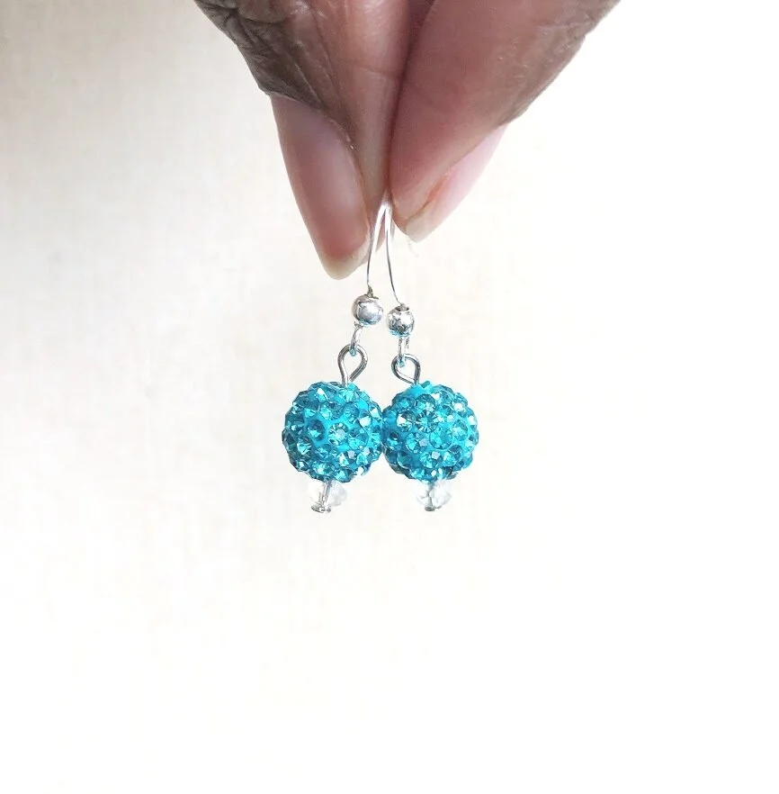 An extravagant yet subtle way of displaying your passion for handcrafted luxury. These dainty dangle earrings add sparkle with classic turquoise pave crystals & a touch of distinct femininity.